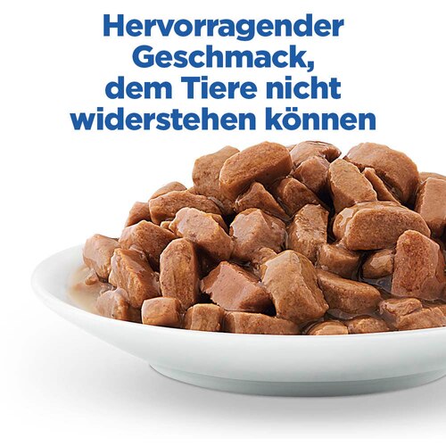 Zarte Stückchen Huhn in Soße für Katzen, mit L-Carnitin und weniger Kalorien für ein optimales Gewichtsmanagement. Voll an hochwertigem Protein, Omega-6-Fettsäuren und Vitamin E für glänzendes Fell und gesunde Haut.